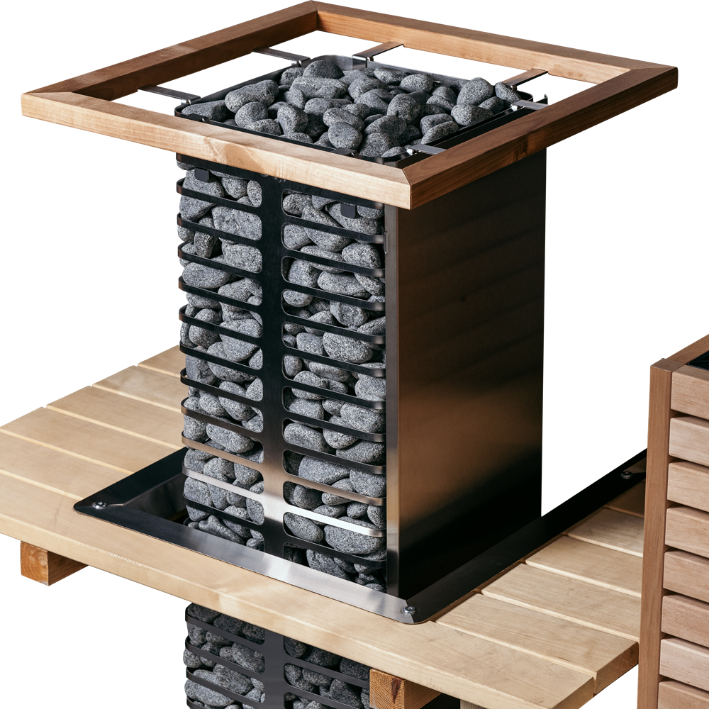 - When the heater is embedded, at least 550 mm / 21.7 in of the heater should protrude from the sauna bench surface.