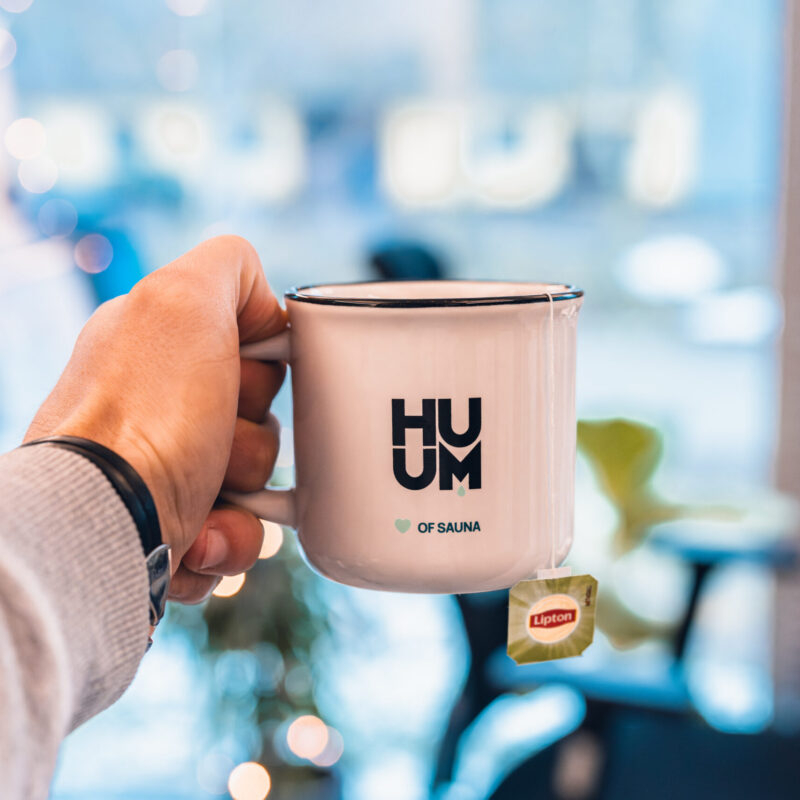 This stylish ceramic mug features a classic design with high-quality silk screen printing of the HUUM logo, making it a perfect companion for any sauna lover.