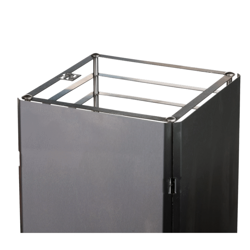 The reflector is made of stainless steel, and it is mounted to the fins of the CLIFF sauna heater.